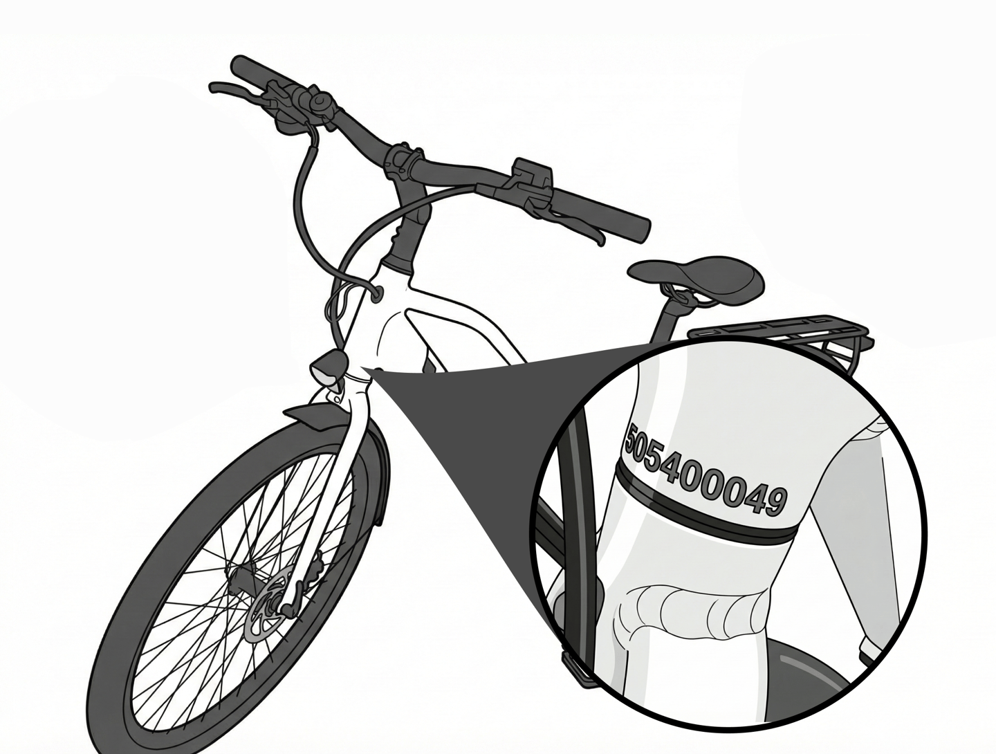 L'identifiant du vélo se trouve sur le cadre, entre la roue arrière et la tige de selle. Voici comment le trouver.
